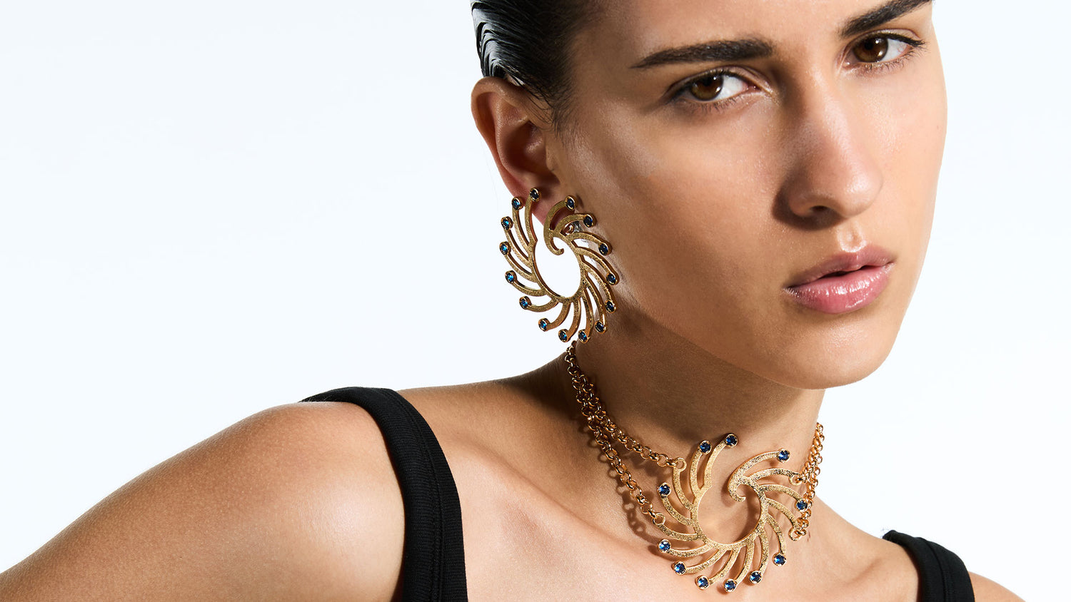 Inspired by different artistic and cultural movements and with a love for architecture and ancient jewellery, Liase fuses intricate geometries and modern shapes with colorful gemstones and enameled details.